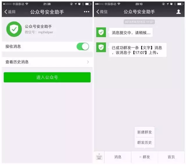 重磅好消息:微信公众平台手机版公测了,你可以在“公众号安全助手”(mphelper)上管理公众号。