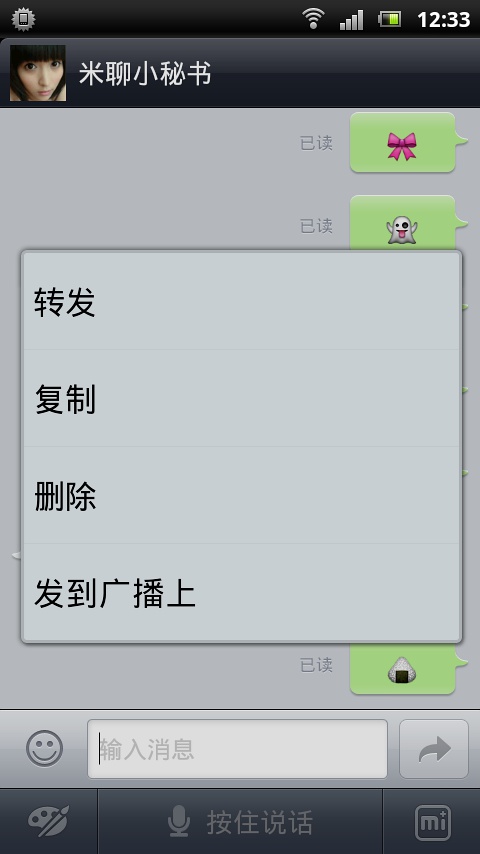 蓝后第一步,打开米聊,把米聊的表情包全给下载老。