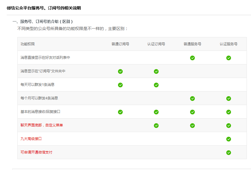 现在我们每天收到的消息推送一般都是订阅号,但是如果要特殊接口开发一些功能比如支付,那么就要选择服务号了。最本质的区别:可扩展性:服务号>订阅号;推送信息数量:订阅号>服务号。根据需要进行选择。一般服务号有很强大的数据库管理系统,一周能够推送一次消息,订阅号每天可以推送一次。看你自己需求。