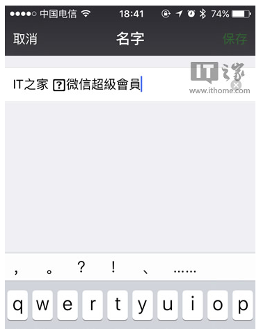 这个是如何实现的呢?点击这些好友的名字并复制你会发现,里面多一个特殊字符……对,就是那个在iOS9上可以改变字体大小的特殊字符。因此教程就是:在名字后面加上一个空格,粘贴特殊字符,再输入“微信超級會員”就会有上述效果。